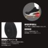 脱ぎ履きしやすい面ファスナータイプ。フィット感を3本のベルトで素早く調整。静電気帯電防止。